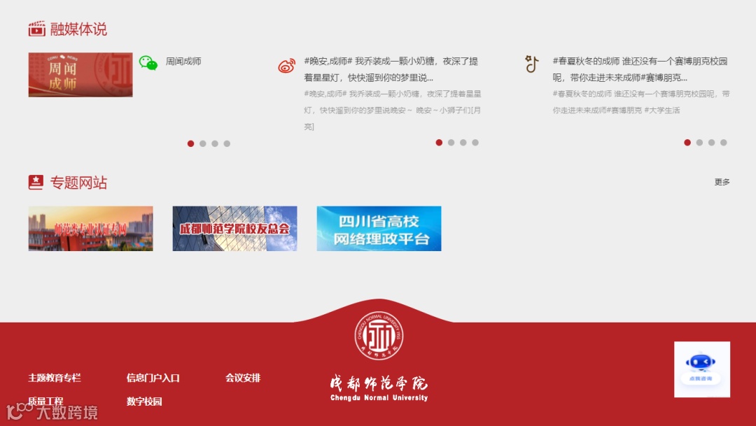 成都师范学院的融媒体平台上线已有一年时间,平台一直运行平稳。在平台的助力下,本就丰富的校园媒体,绽放出了新的活力,高校整体宣传工作也呈现出了蓬勃发展的态势。