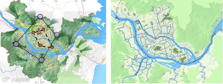 规划以城区外围背景山体为屏、两江内河为廊,城内群峰为节点的区域生态空间保护体系,形成“两江、两屏、百河、十峰”的生态空间保护格局。