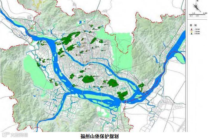 参照《福州市山体保护规划》对各山体划定的空间保护范围。