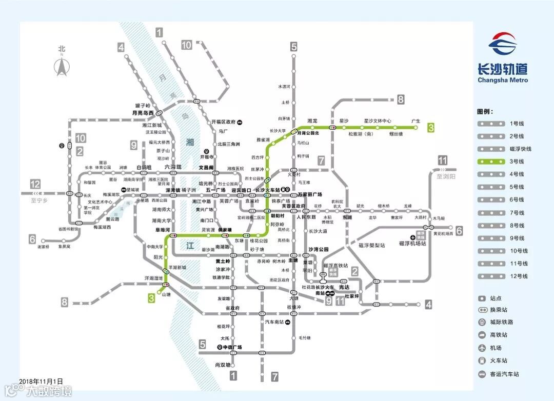 按照11月1日省委常委会议研究,为加快推进长潭两市一体化发展,拟将长沙市地铁3号线南延至湘潭北站。项目起于长沙地铁3号线一期终点山塘站,向南沿潭州大道出地面(地下约700米),之后采用高架敷设,上跨清风路、巡抚路、督抚路、学士路,止于沪昆高铁湘潭北站,全长18公里(长沙10.6公里,湘潭7.4公里),设站6座。计划按3号线制式和技术标准“同车同轨”建设,以实现无缝对接。