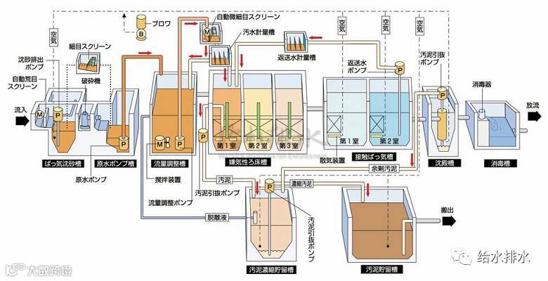 日本村落污水处理典型工艺:接触曝气法工艺流程