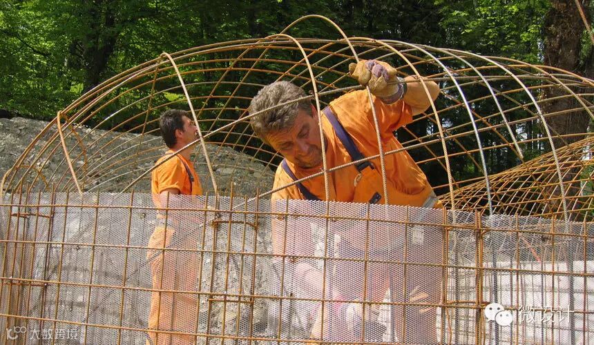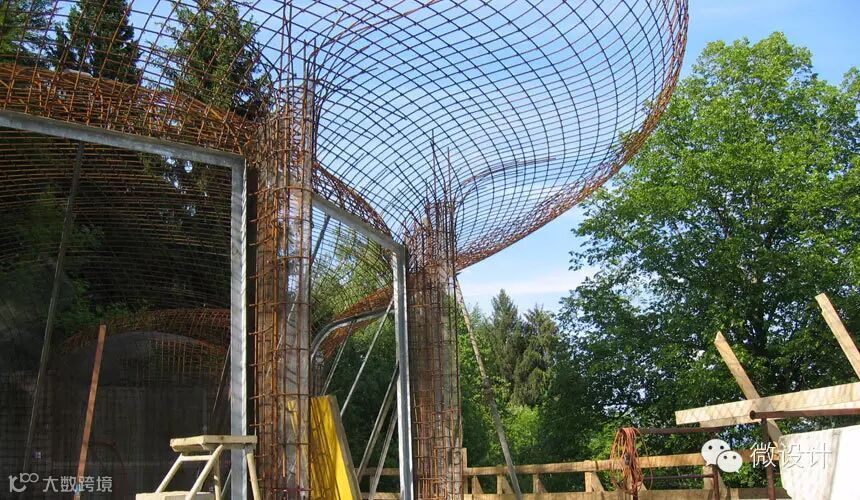 ▲钢筋网的形态决定了未来的房屋外观造型。