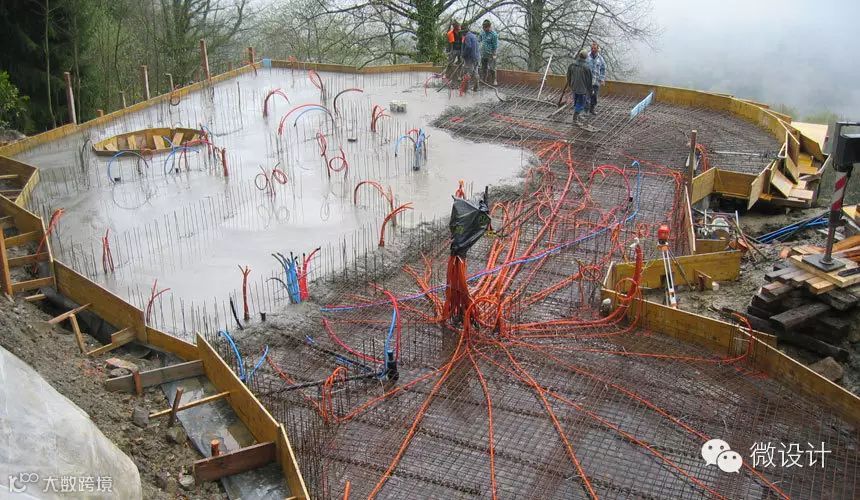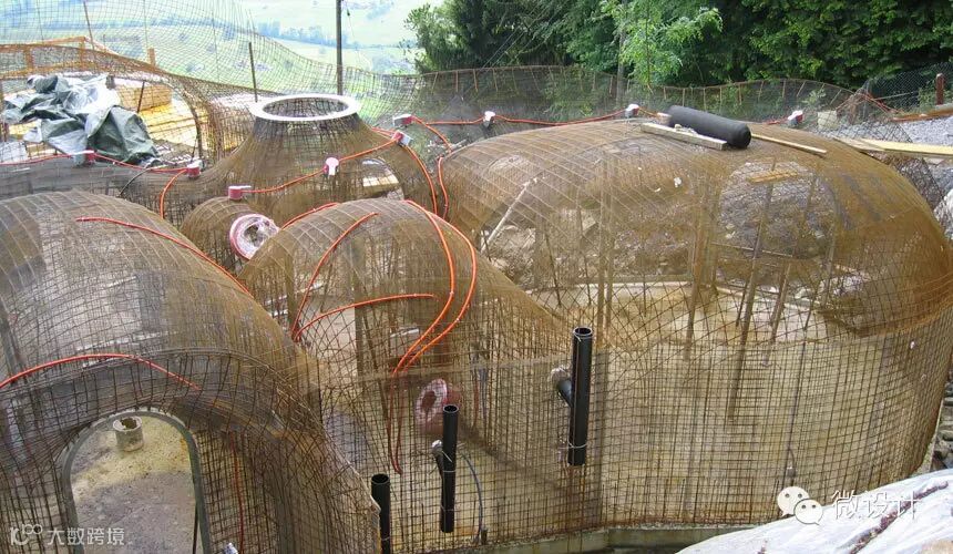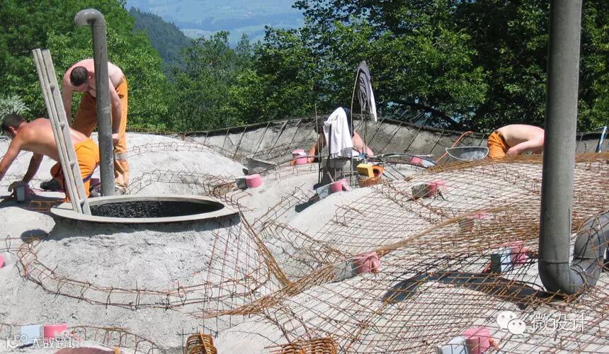 ▲建造完成后,在屋顶上铺设草坪或者栽种植物,将房子掩映在大地当中,成为土地的一部分。