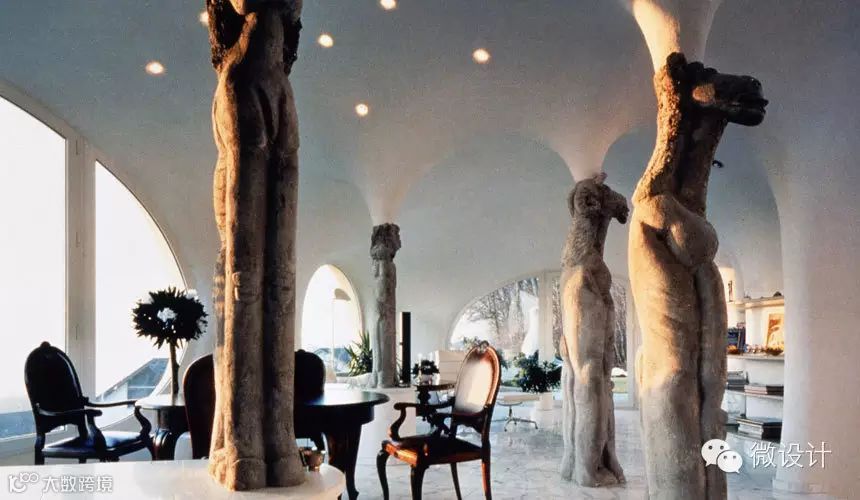 建筑从外形到内部空间都是圆润的造型,使得内部空间格局也趣味横生,颠覆了传统室内设计的单调之感,带给我们显现了一种安东尼·高迪的有机艺术美感。