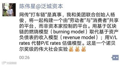 他还表示:“如果用区块链这个事情去做打车是可以搭建出一套跟以往很不一样的经济体系,以此来获取‘人口应用’,等同于互联网里面获取流量,之后我们再在这个基础上做一系列满足用户生活服务的应用。”