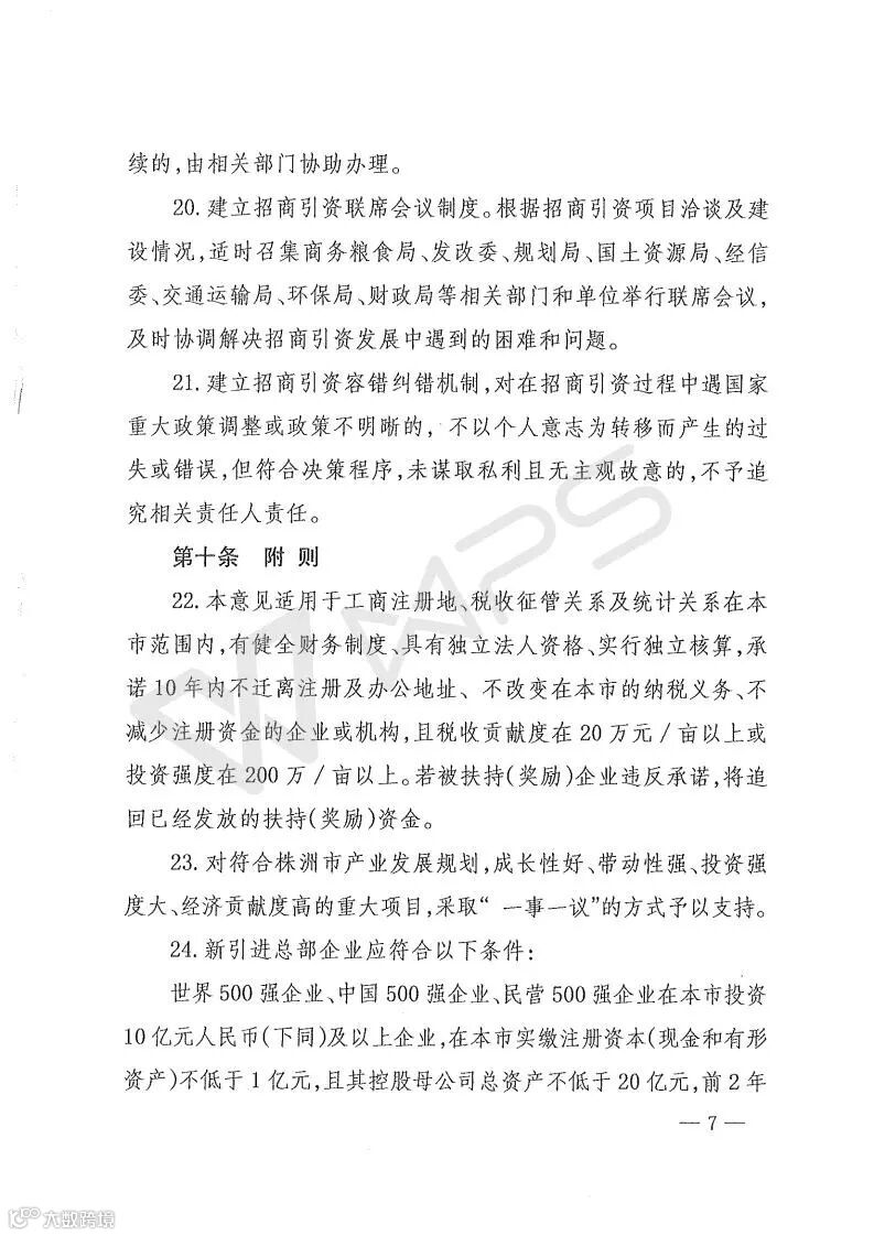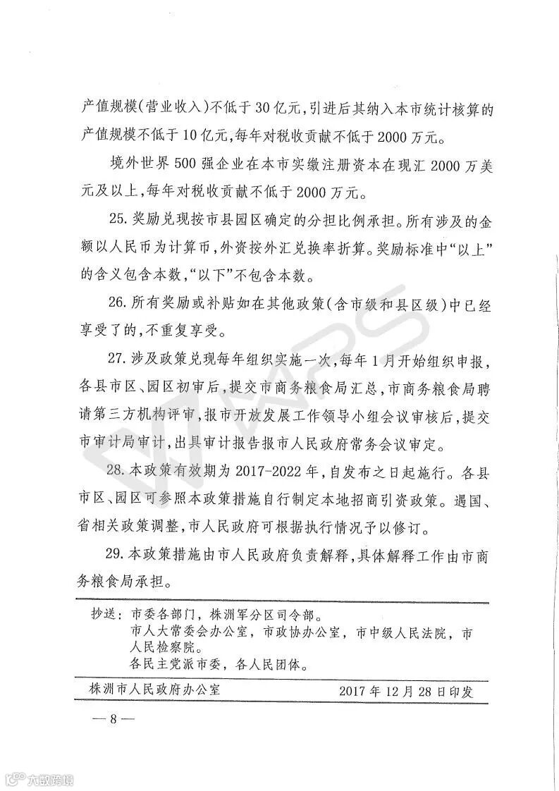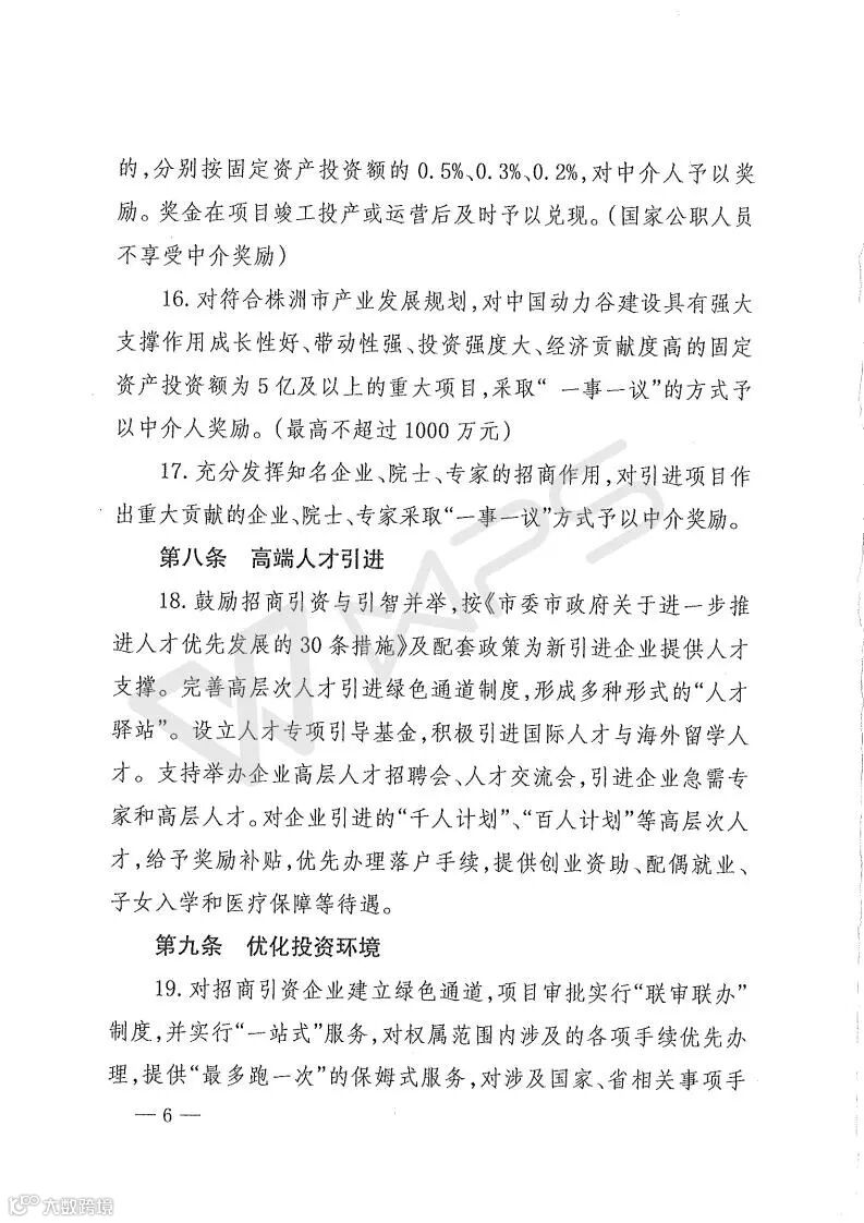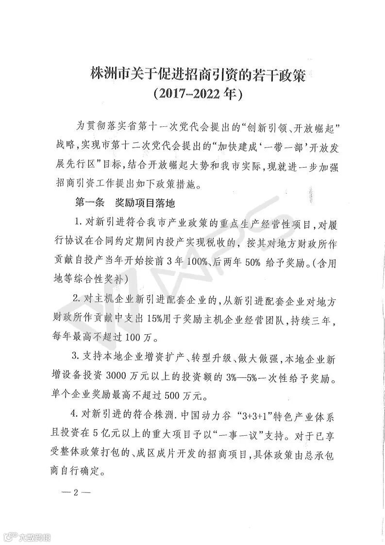 【政务信息】株洲市关于促进招商引资的若干政策(2017-2022年)