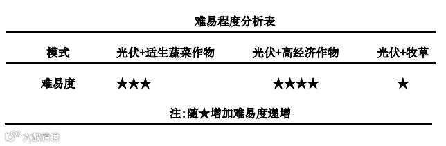 提出可选结合模式:光伏+适生蔬菜作物模式、光伏+高经济作物模式。并结合当地市场状况,给出成本及收益测算。