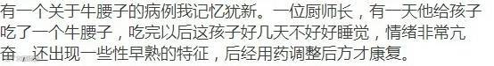 内脏的说法也是来自一个病例,一个孩子吃了一个牛腰子就有性早熟特征了,无法理解这样的诊断是怎么做出来的。
