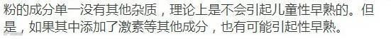 说DHA和蛋白粉里面如果添加了激素就可能导致性早熟,这句话倒是没错,但这一枪也够歪的。试问什么食物里添加了性激素不会导致性早熟?