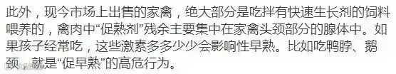 但这条本身至少是沾了边——罪魁祸首不是油脂本身,而是肥胖。肥胖是性早熟的高危因素,因为人体内积累的脂肪会促进雌激素形成。