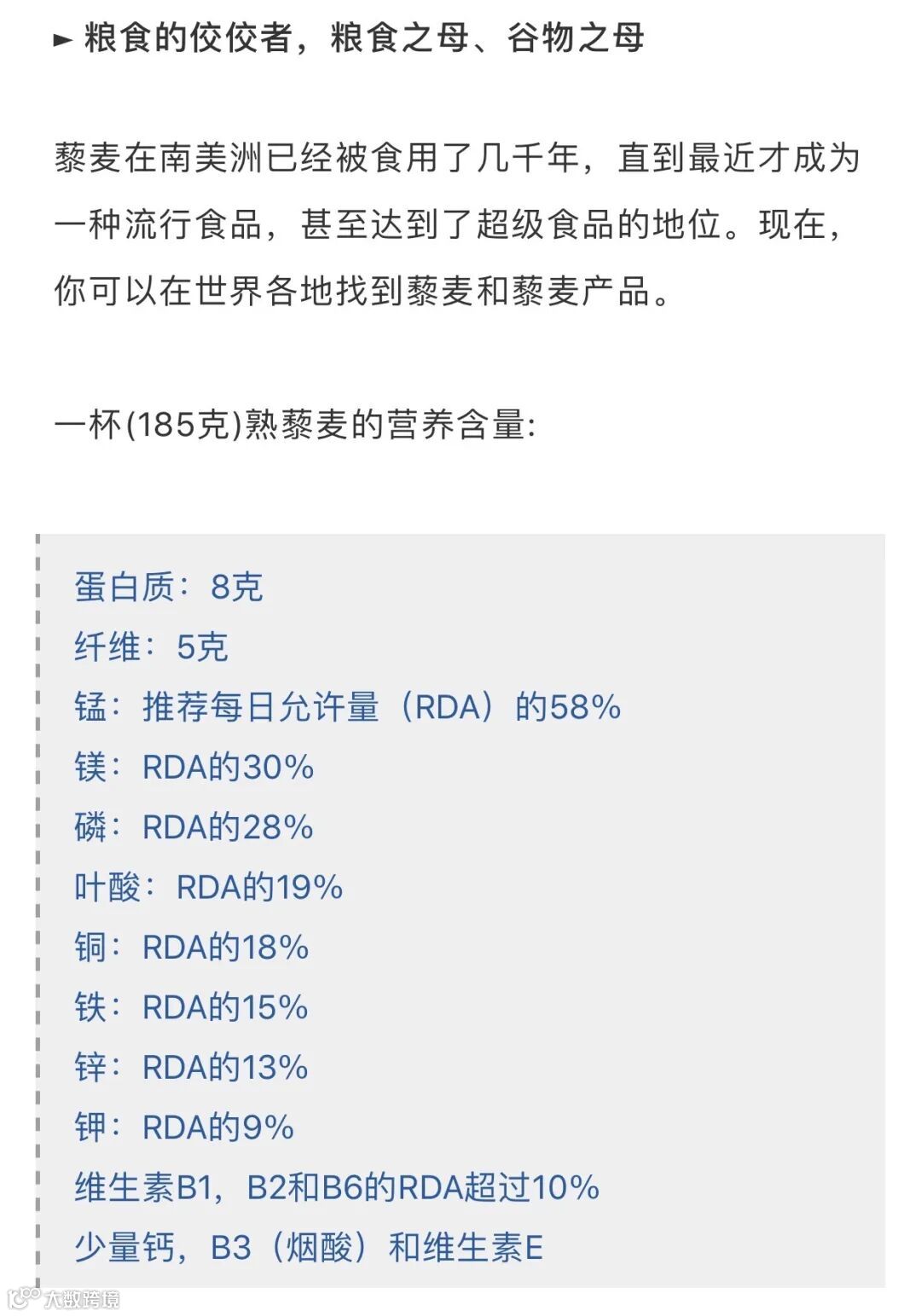 藜麦被国际营养学家们称为丢失的远古“营养黄金” 、“超级谷物” 、“未来食品”,还被素食爱好者奉为“素食之王”。