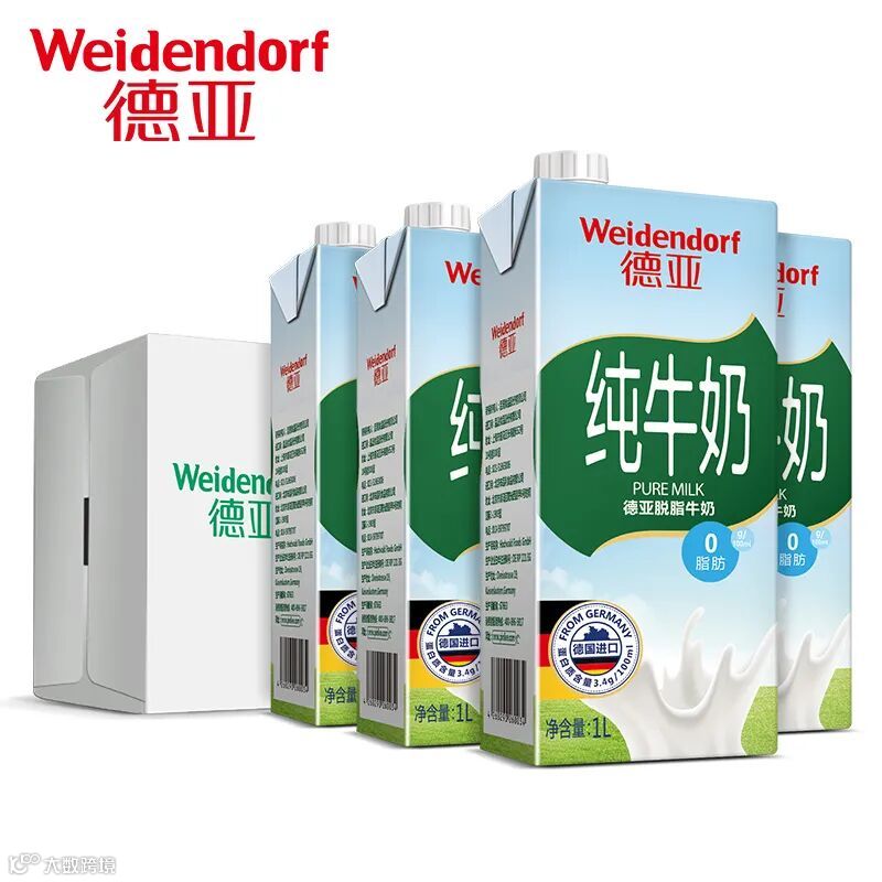 德亚德国原装进口牛奶全脂/脱脂纯牛奶1L