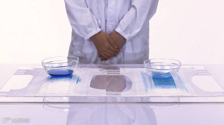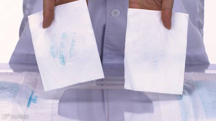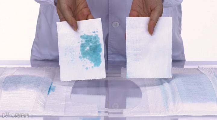 研究发现,穿大码的小宝宝尿量平均在60ml左右,现在我们准备的300ml液体相当于穿L码宝宝的5次尿量。对两片纸尿裤进行匀速注水,可以发现,轻薄的Dodie纸尿裤不仅吸收300ml液体无压力,而且相较起来,Dodie纸尿裤吸收液体明显更快地沿着四周均匀渗透,纸尿裤不鼓包,用纸巾抹纸尿裤表面,Dodie纸尿裤干爽看得见。这意味着,吸量大,就算宝宝安睡一晚都不用换纸尿裤,也不会因为鼓包、潮湿而感到不舒服。
