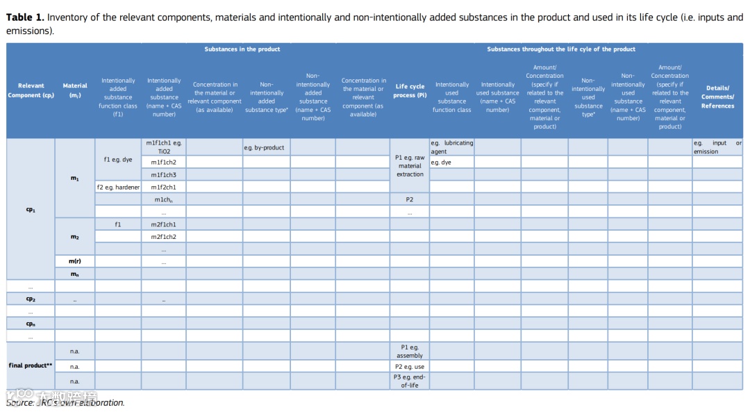 首先,为了追踪产品生命周期中的关注物质(Article 2(27) of the ESPR),报告提出了对产品全物质信息要求的定义。产品全物质信息表中应包含产品中使用的再生材料以及产品废弃处置时所产生的材料回收。其次,虽不在最终产品中含有,但产品的制造、运输等过程中有使用的物质也可能会被要求在产品全物质信息中披露。另外,作为关注物质需披露其是否为有意添加,并为该物质提供用途等属性字段。欧盟委员会认为当信息足够完整,借助于数字产品护照(DPP,Digital Product Passport)以及其他诸如标签、吊牌等可以使产品信息在企业、组织、消费者、废物管理运营商之间得到有效传播。