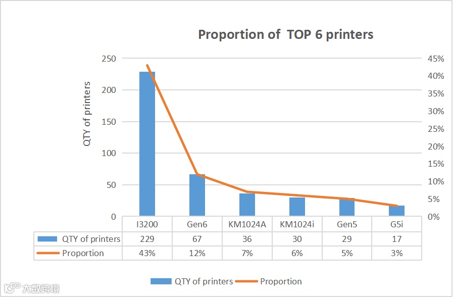 The number of printer using I3200 at the fair was the largest, accounting for 43%.