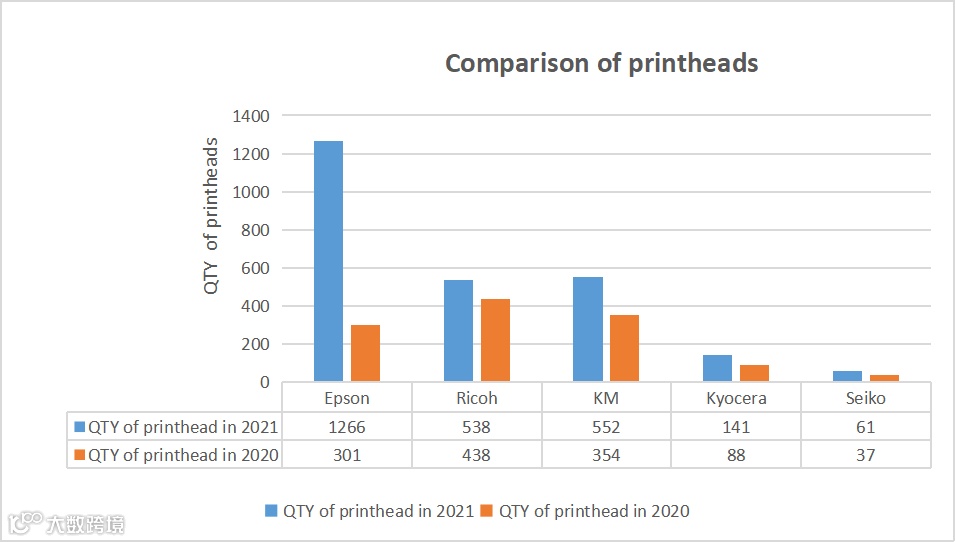 Affected by the epidemic in 2020, the number of printer and printhead was less than that in 2021.