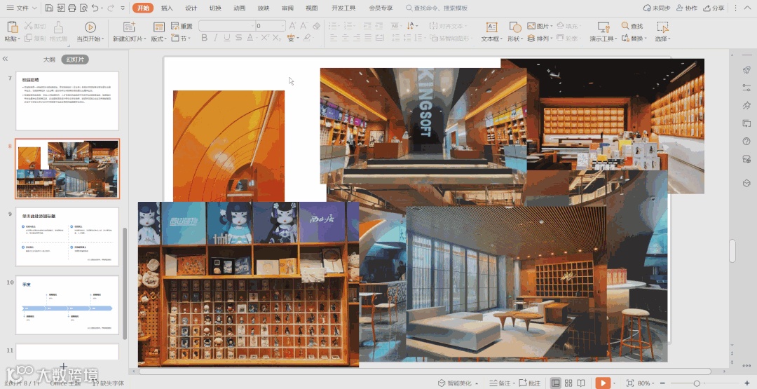 当你想插入多张图片,却不想费时一一进行对齐排版时,可以使用WPS演示中的图片拼接功能,助你快速多图排版。