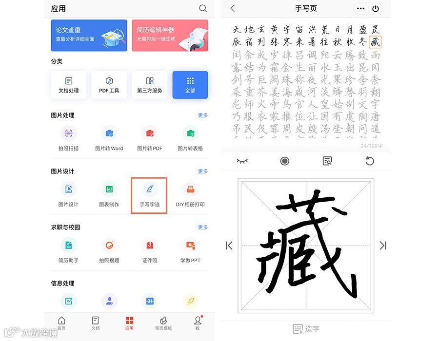 WPS手写字迹,将个人的手写字迹录入成一套字体。很多明星都出了手写字体,比如早期的徐静蕾字体,近期的井柏然、TFBOYS、郭敬明、张杰等,都纷纷推出了成套的个人专属手写字体。