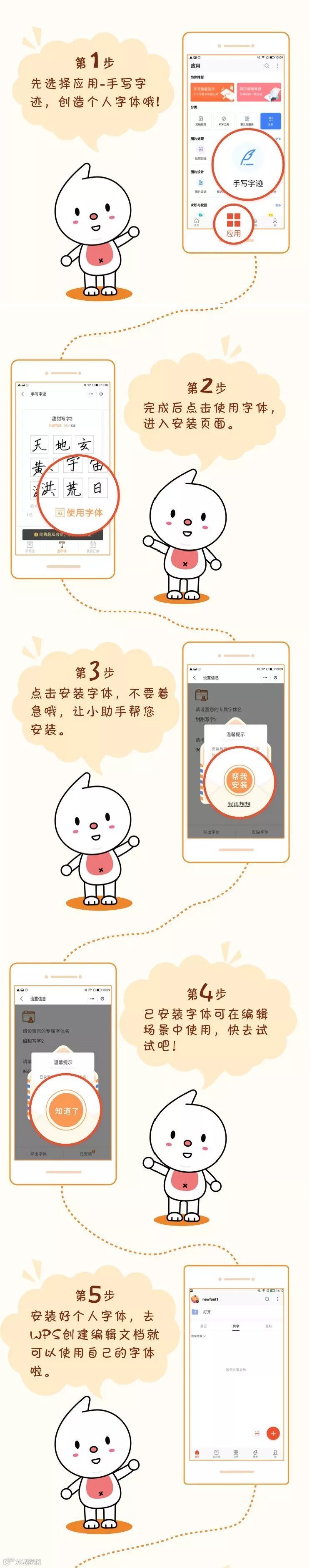 在WPS“手写字迹”功能中创建自己的手写字体,生成TTF文件后直接在编辑文档中应用。即造即用,效果看得见!