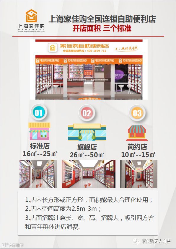 家佳购智能售货机的经销门槛是进20万元柜机。现在,只要开一家无人便利店,就能免费获得家佳购智能售货机的经销商资格。