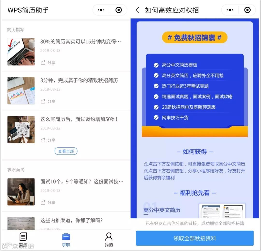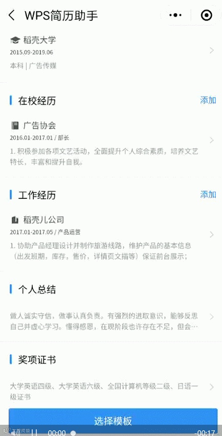 WPS简历助手最大程度上解决了不会写内容、不会排版两大难题,节约下来的人工成本,用到刷题呀、准备面试啊都是无价滴~