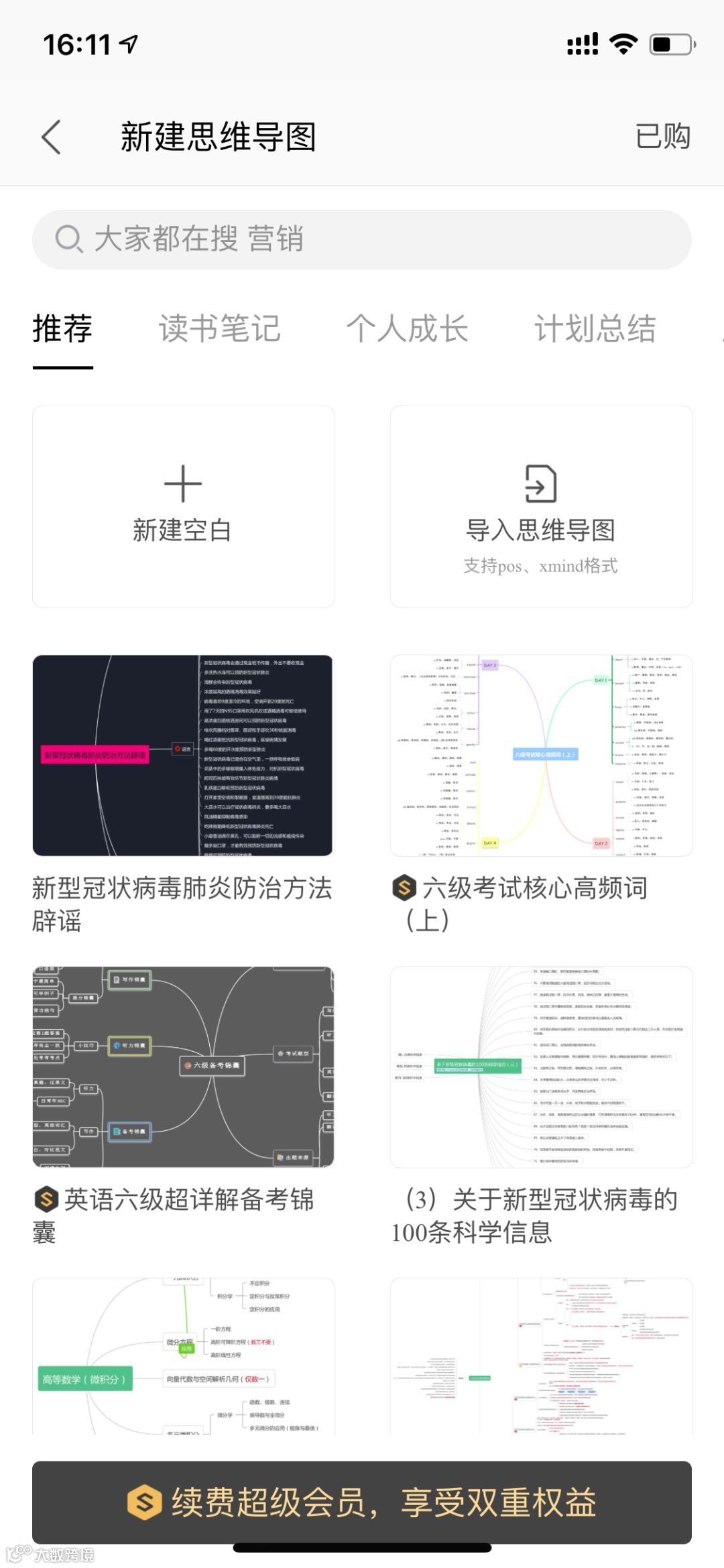 WPS脑图功能全员免费使用,部分模板成为稻壳会员/超级会员后免费使用。