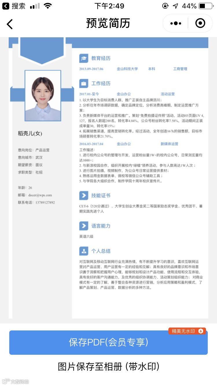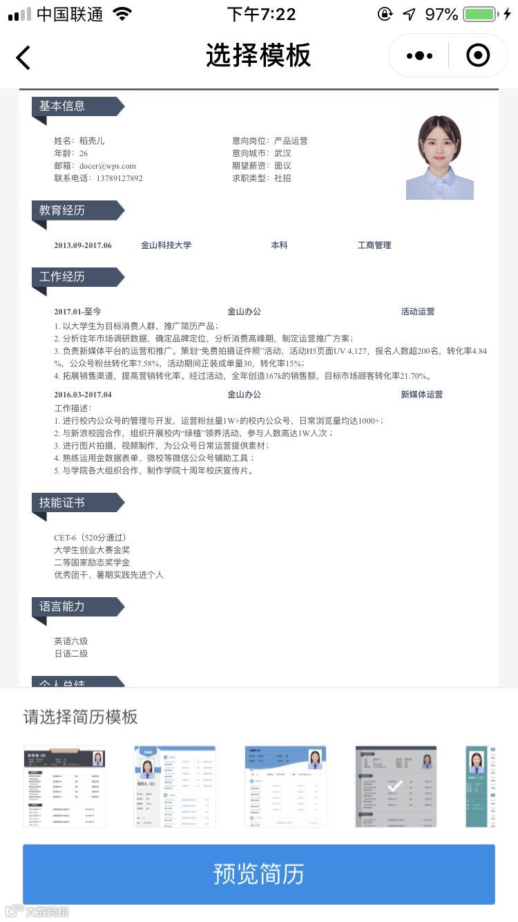 有了WPS简历助手,在手机上就可以直接填写-生成-下载简历,连电脑也不用打开,躺着就搞定了一份简历!
