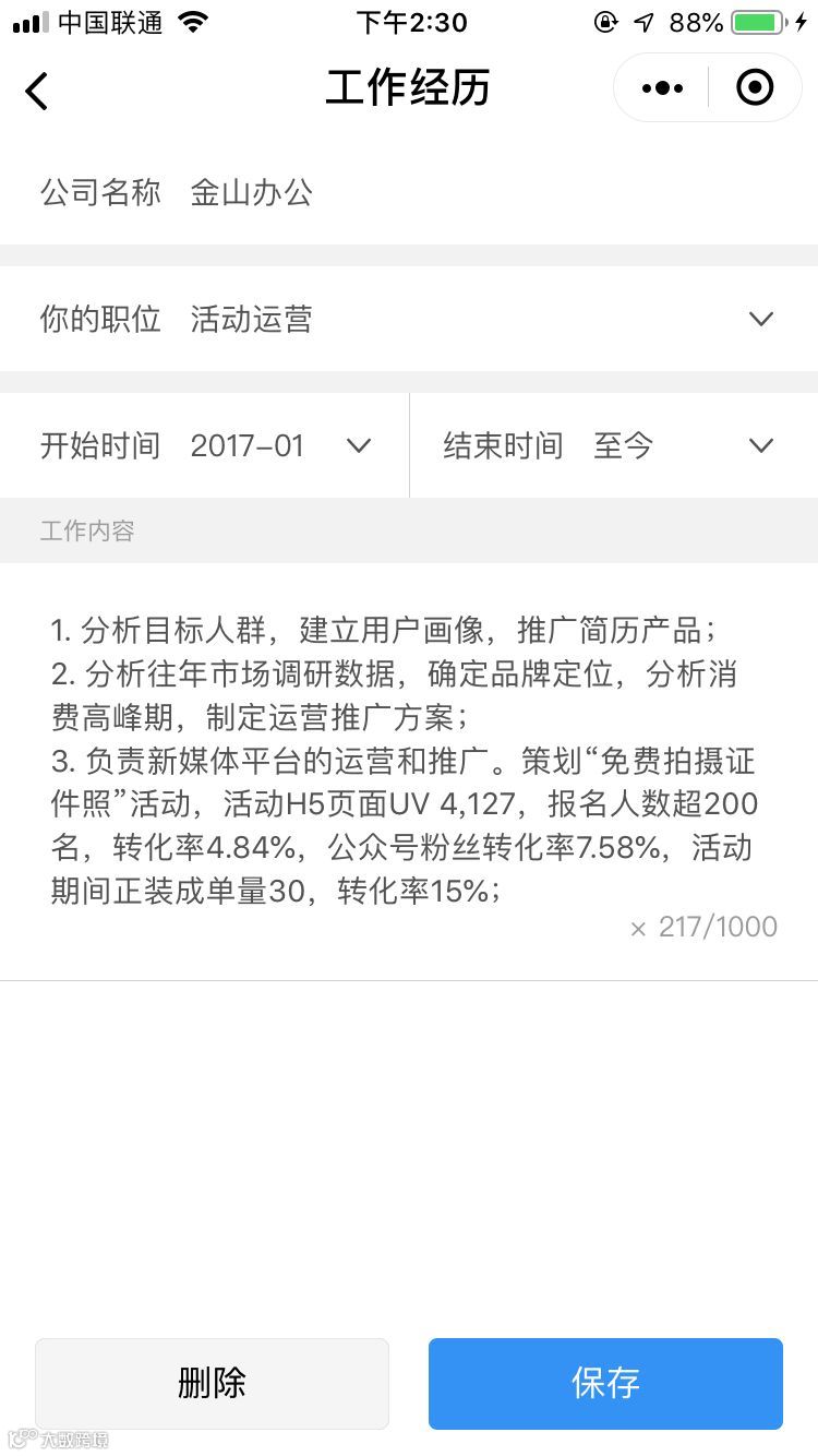 聚焦于简历的核心模块,点击即可进行内容编辑,操作方便。