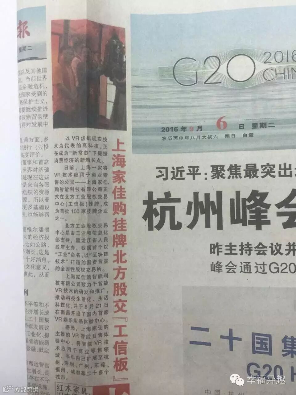 《文汇报》2016年9月6日报道上海家佳购挂牌北方股交“工信板”