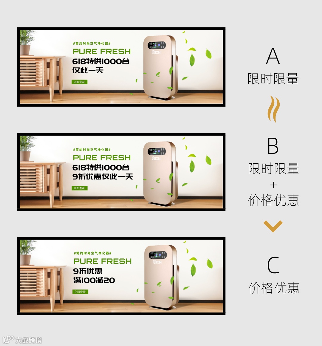 促销文案一般有2种,一种是价格优惠,一种是限时限量。如果只放一种文案,则限时限量会比价格优惠要高出86.1%的点击率。多种促销文案叠加,对提升点击并没有显著帮助