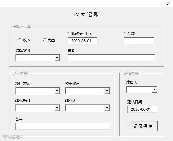 设置好相应的基础信息之后,通过鼠标点击就可以快速记账,仅收/支、金额、日期为必填项,同时还支持额外记录更多的相关信息,一键保存明细,随时查看。