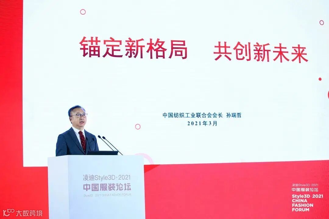 中国纺织工业联合会会长孙瑞哲在以“锚定新格局 共创新未来”为题的主旨演讲中指出,在新基建大潮下,一轮全新的产业发展范式正悄然酝酿,新品牌、新产品、新业态、新模式不断涌现,持续引领和创造新的消费需求。他从数字共同体、文化价值链、未来话语权三个维度,探讨了中国服装产业的破局新方向和求解新思路。