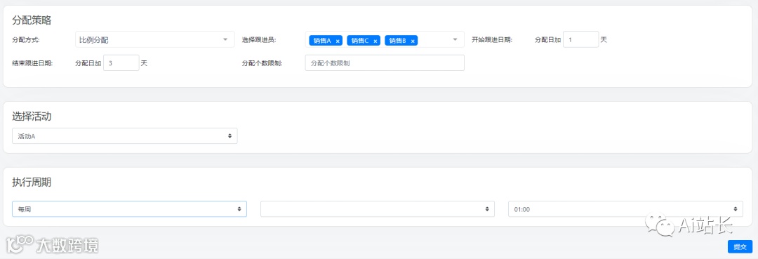 除了单次活动手动地做客户分配,产品还支持周期性的自动分配客户。