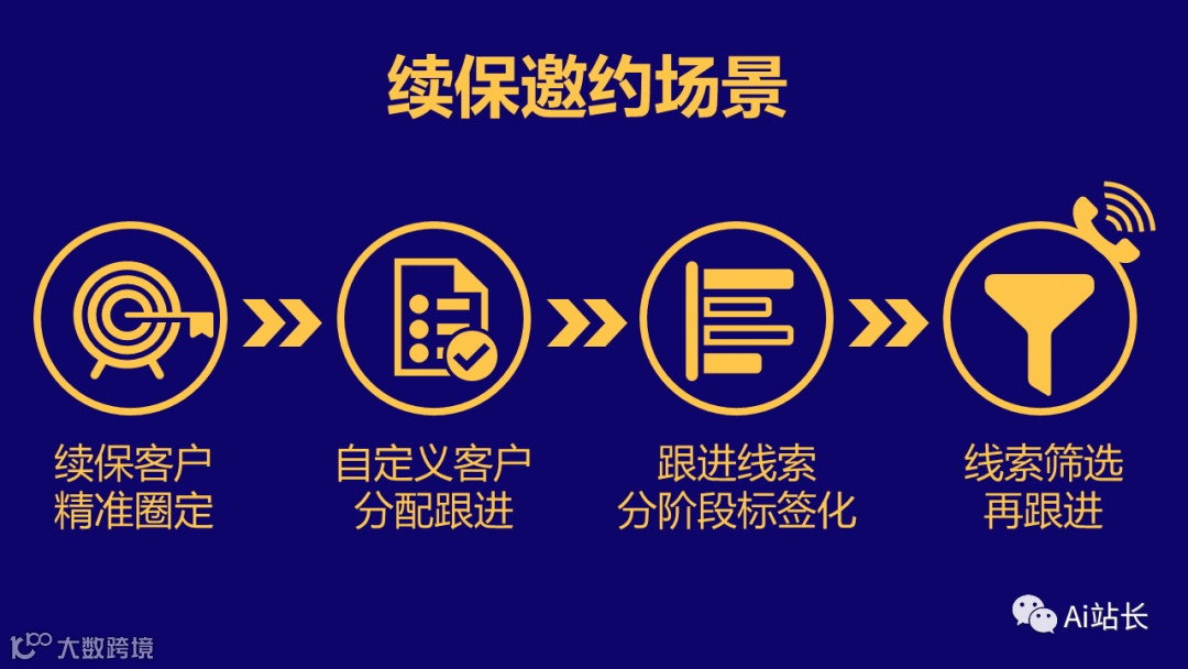 在续保场景的迭代方面,Ai站长正在计划逐步引进有效外部车险数据。基盘客户信息通过与车险数据相结合,让续保专员在进行招揽前得到更全面的信息,获得更精准的续保客户画像,从而提高续保招揽率。