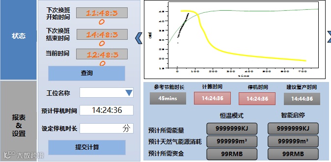 白车身进入喷漆工序之前,需要浸泡在前处理工序的多个恒温的水槽中进行脱脂、清洗、磷化等一系列处理,这些巨型的水槽需要一直消耗天然气来加热,使得水槽的温度保持恒温。如果前道工序发生停线,能否计算最佳的水槽加热启停时间,节省能源消耗,是我们要解决的关键问题。