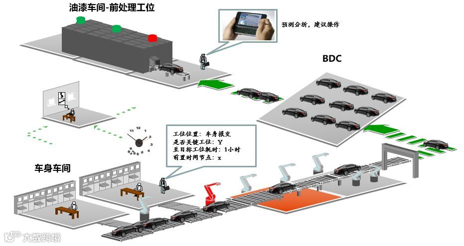 从工厂角度看各车间情况,在生产线正常运作的工程中,一旦车身车间出现设备故障,生产线则会停机。传统的前处理工位启停模式为多个工位同时启停,现在,基于“智能工厂”的发展方向,该车企希望利用车间内无所不在的传感器、电子标签、监控器的数据,通过成熟先进的数据分析工具挖掘数据价值。油漆用户和车身确认实际停机预判时间后,可根据预测分析,通过能耗比对,更专业地为工程师提供最佳启停方案。