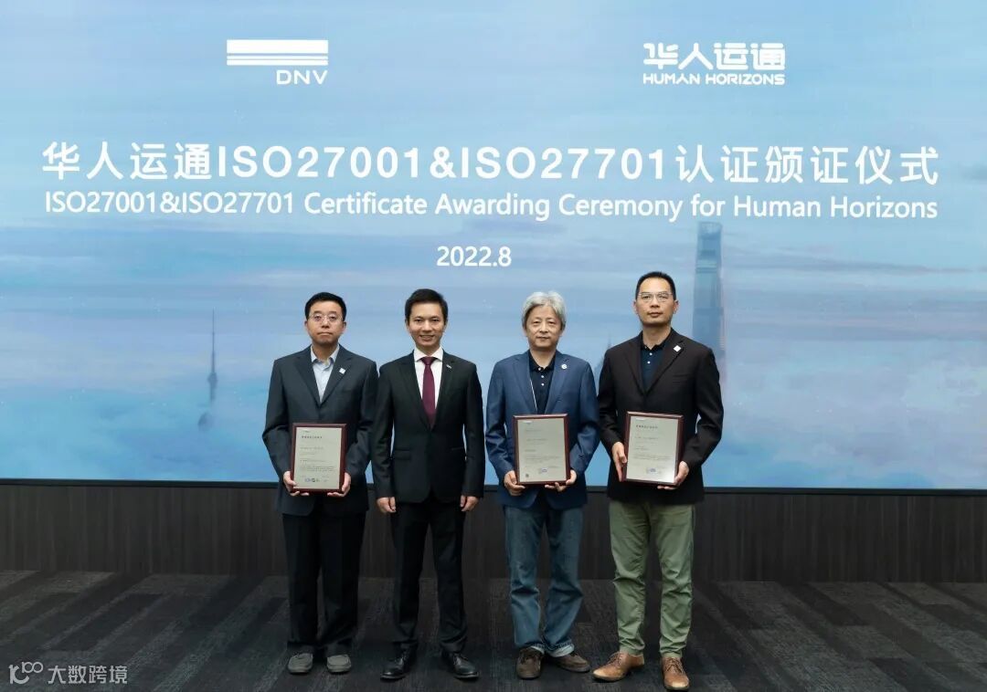 DNV管理服务集团大中国区业务发展总经理兰锦、华人运通IT副总裁龚峻、质量总监陈智斌、法务总监王辉东,双方代表出席了授证仪式。