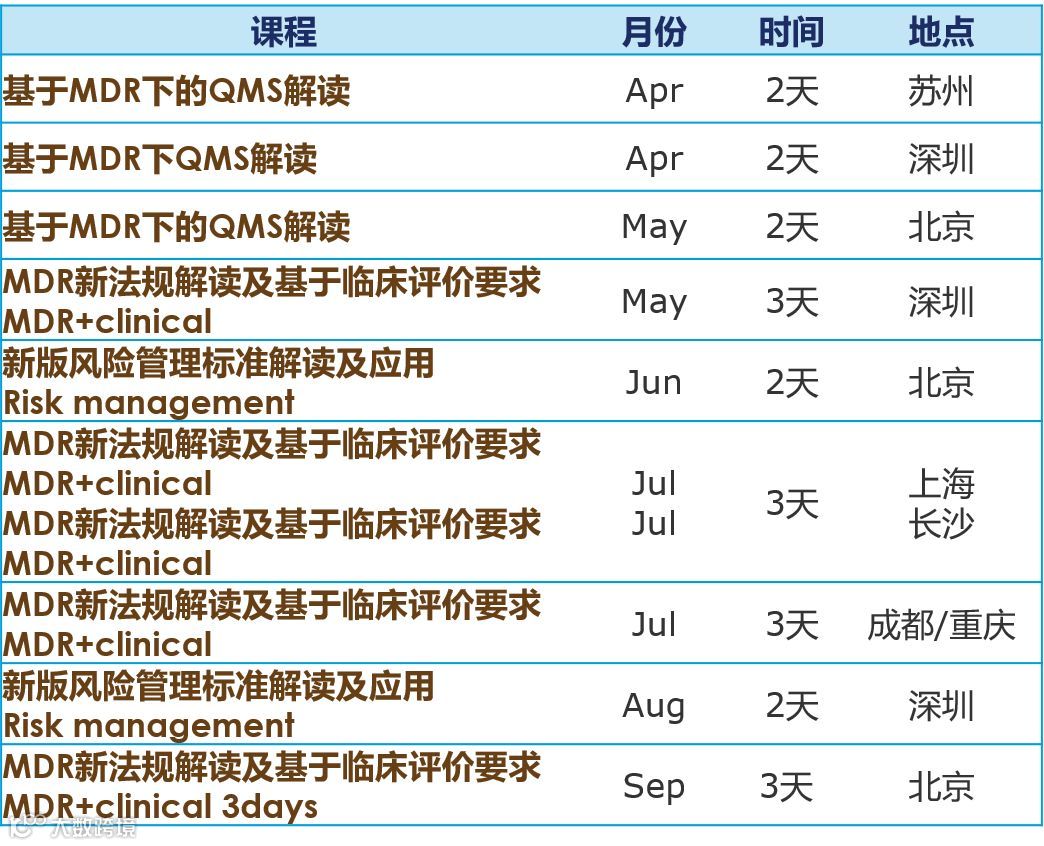 2020年是MDR过渡年,我们将为客户提供如下培训课程,助力客户在MDR的后续工作中可以顺利开展:
