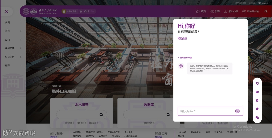 图书馆在高校中承担核心的资源服务职能,每天都面临大量咨询压力,智能咨询互动方式的出现,将完美解决这一问题。80%的咨询问题都可以通过知识库自动回复,剩余20%转交馆员线上回答,缓解图书馆咨询压力的同时也是读者智能咨询服务体系的核心入口之一。