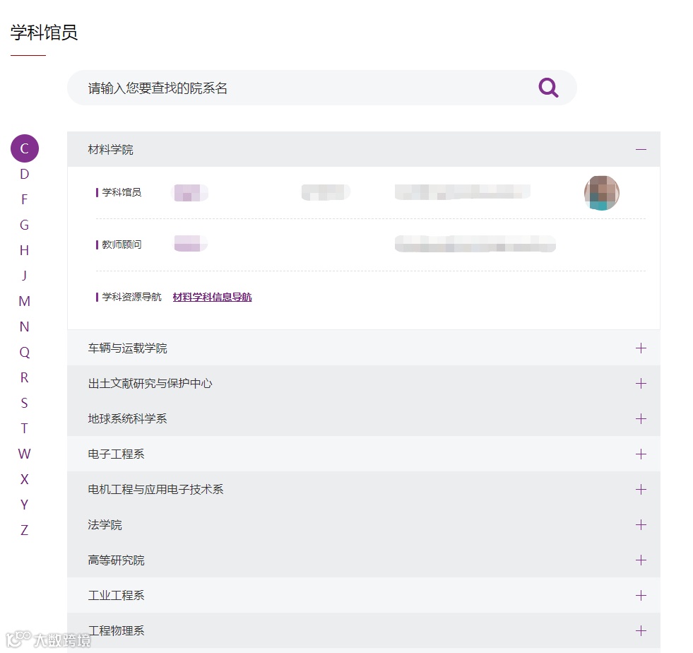 学科馆员中,以院系名称为检索维度,更适合读者使用习惯;