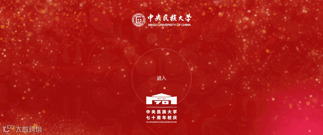 首页采用师生熟悉的“中大红”,围绕学校校名、 校门、校徽等展开设计,将传统民族元素融入红色画面背景中,帮助师生快速定位学校身份,以动效“进入”引导点击,实现与学校的情感链接。