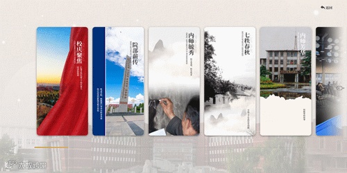 以书页形式展开“校庆聚焦、院部薪传、内师毓秀、七秩春秋”等16个栏目,展现学校深厚的人文底蕴。每个书页上还附有栏目的基本功能简介,方便师生查看自己所关注的信息,获取所需要的服务。