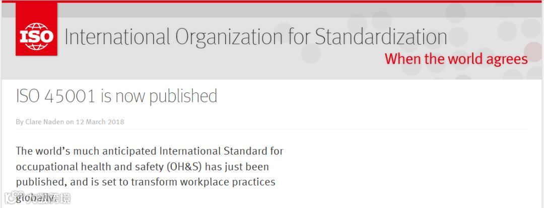 今天(2018年3月12日),国际标准化组织(ISO)发布了职业健康与安全新标准--ISO 45001,该标准将取代OHSAS 18001。