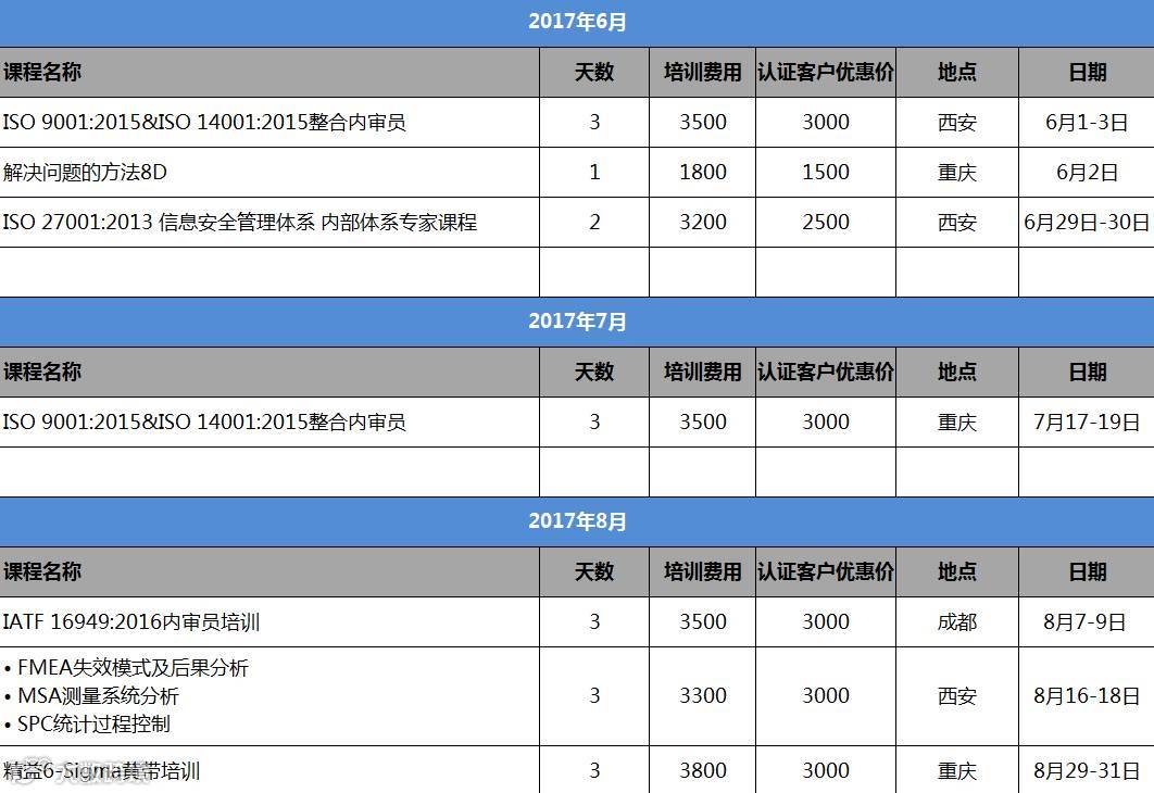 以下是我们大中国西区2017年6月 - 8月的培训课程计划,如有需要,敬请与我们联系。