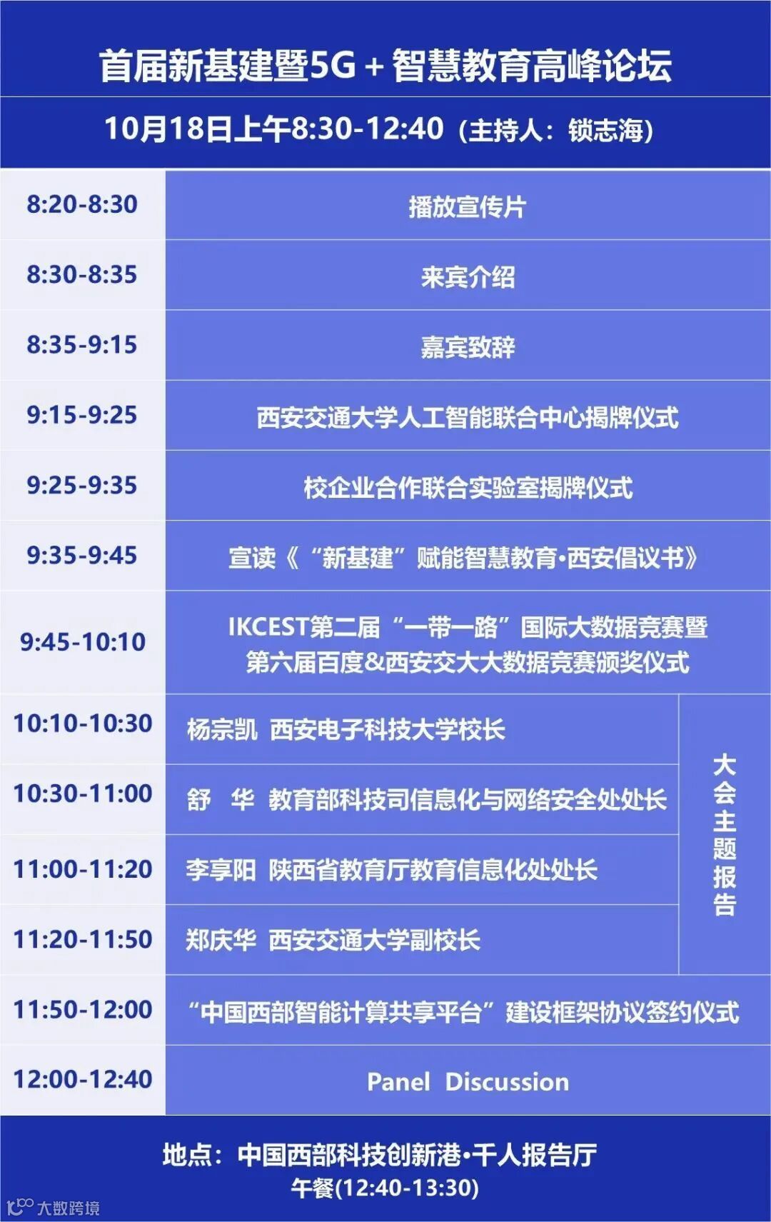 为贯彻落实国家新基建战略部署,加快教育信息化成果转化和孵化,引领5G时代教育信息化创新发展,由陕西省教育厅、联合国教科文组织国际工程科技知识中心(IKCEST)主办,西安交通大学承办的“首届新基建暨5G+智慧教育高峰论坛”将于10月18日在中国西部科技创新港召开。届时博达软件也将与各高等学校信息化主管领导,信息化建设办公室、网络信息中心等部门负责人及技术业务人员共同参会。