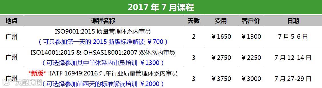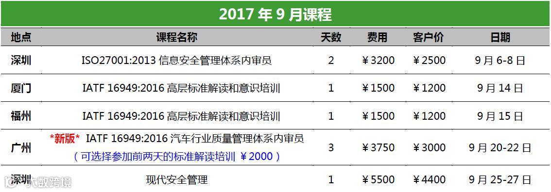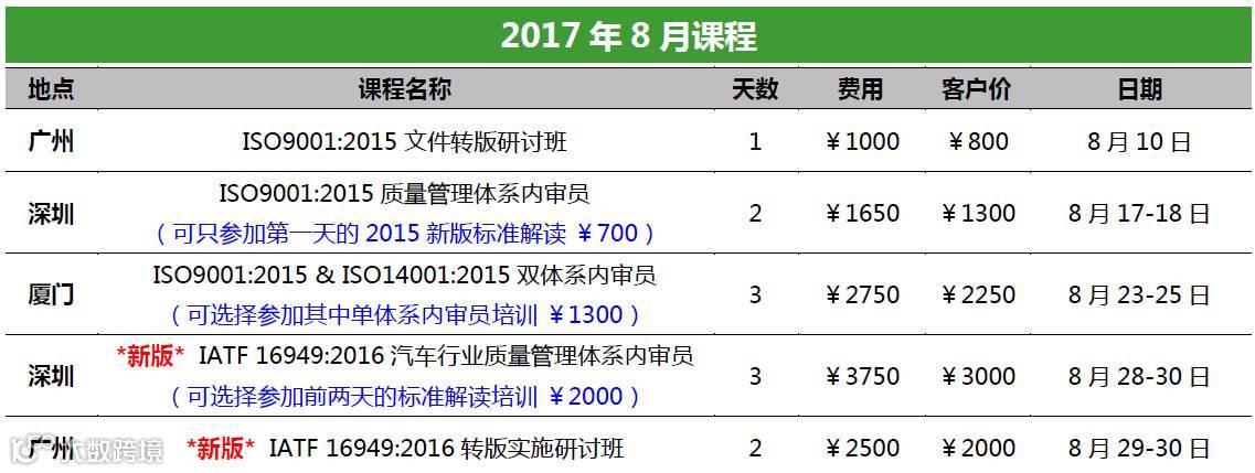 以下是我们大中国南区2017年7月 - 9月的培训课程计划,如有需要,敬请与我们联系。