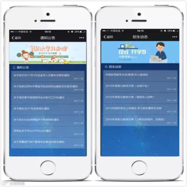 依托招生办微信公众号搭建招生办微官网,通过这种轻型移动端微门户,将招生动态通知发布、校园导航、校园风光导览、名师风采展示、专业介绍、录取查询、成绩查询、班级分配、招生咨询等一系列场景落地,实现线上线下完美互通,为广大学生家长带去便利,同时也为扩大学校的影响力,凸显学校的特色优势提供支持。