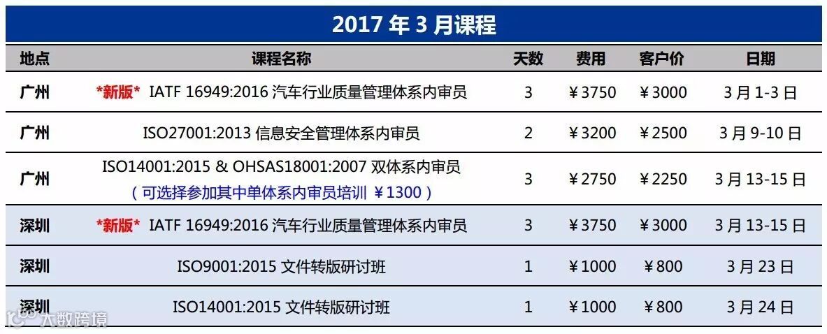 以下是我们大中国南区2017年2-3月的培训课程计划,如有需要,敬请与我们联系。