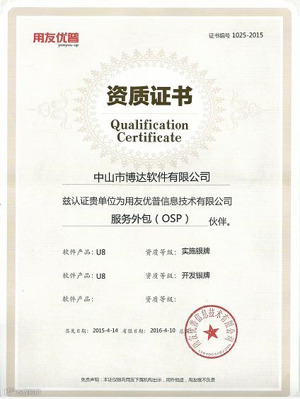 中山市博达软件有限公司隶属于广州朗恒集团,是以推广企业信息化、实施ERP、CRM软件系统为主要业务的高新技术服务企业。公司的员工主要由具有实际工厂经验的管理顾问、行业专家和软件工程师构成。 博达公司自2000年成立以来,一直以务实的客户导向模式服务用户,以“只有成功用户,没有失败案例”的口碑获得市场认同。博达公司是用友软件股份有限公司的核心战略伙伴,高端产品增值服务伙伴。是首批用友软件U8ERP制造业服务伙伴。