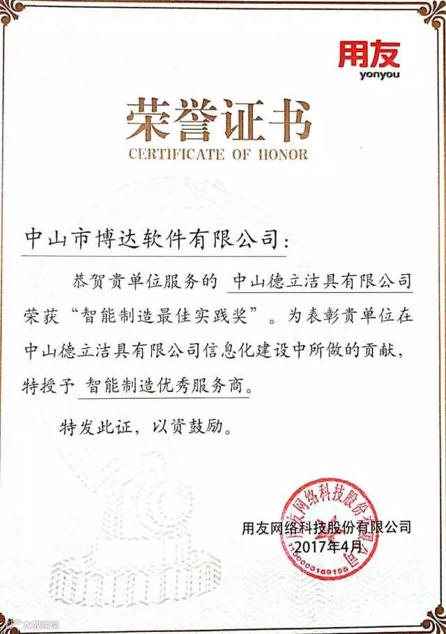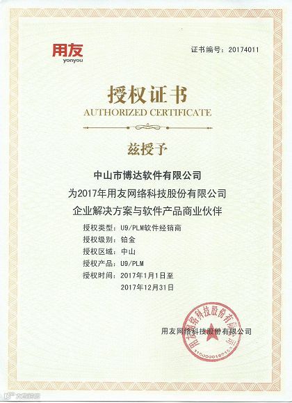 服务外包授权资质 智能制造最佳实践奖 U9/PLM授权资质